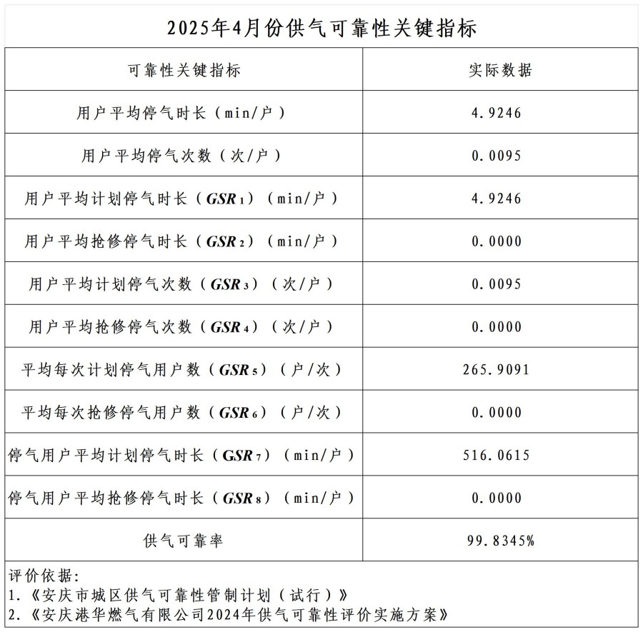 2025年5月份供氣可靠性關(guān)鍵指標(biāo)
